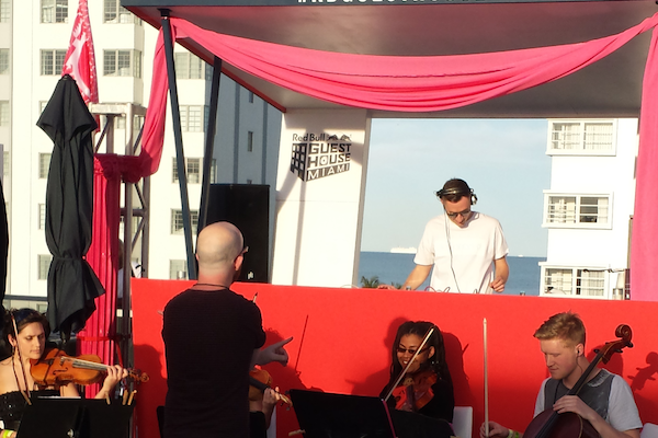Likewise, a random stop in at the Red Bull Guest House to see a few friends leads to a string quartet (masterfully led by Grant Windsor) playing Drake and Rafael Saadiq on one level and Giorgio Moroder spinning on another level.